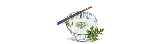 Servo il riso in una ciotola con 2 o 3 cucchiai di pesto di rucola.